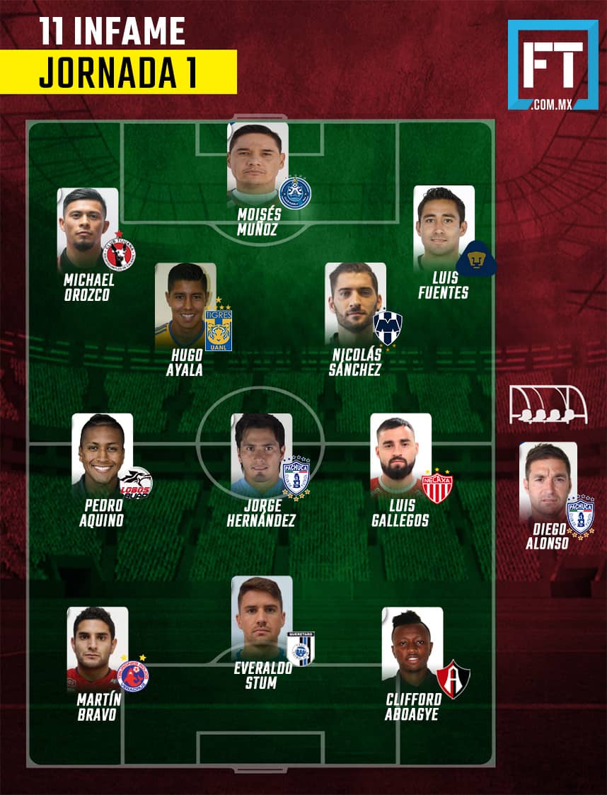 Fue en el sitio web Fútbol Total, donde se publicó ‘el 11 infame’ que menciona a los jugadores con el rendimiento más bajo dentro del terreno de juego, siendo los peores jugadores de la jornada.